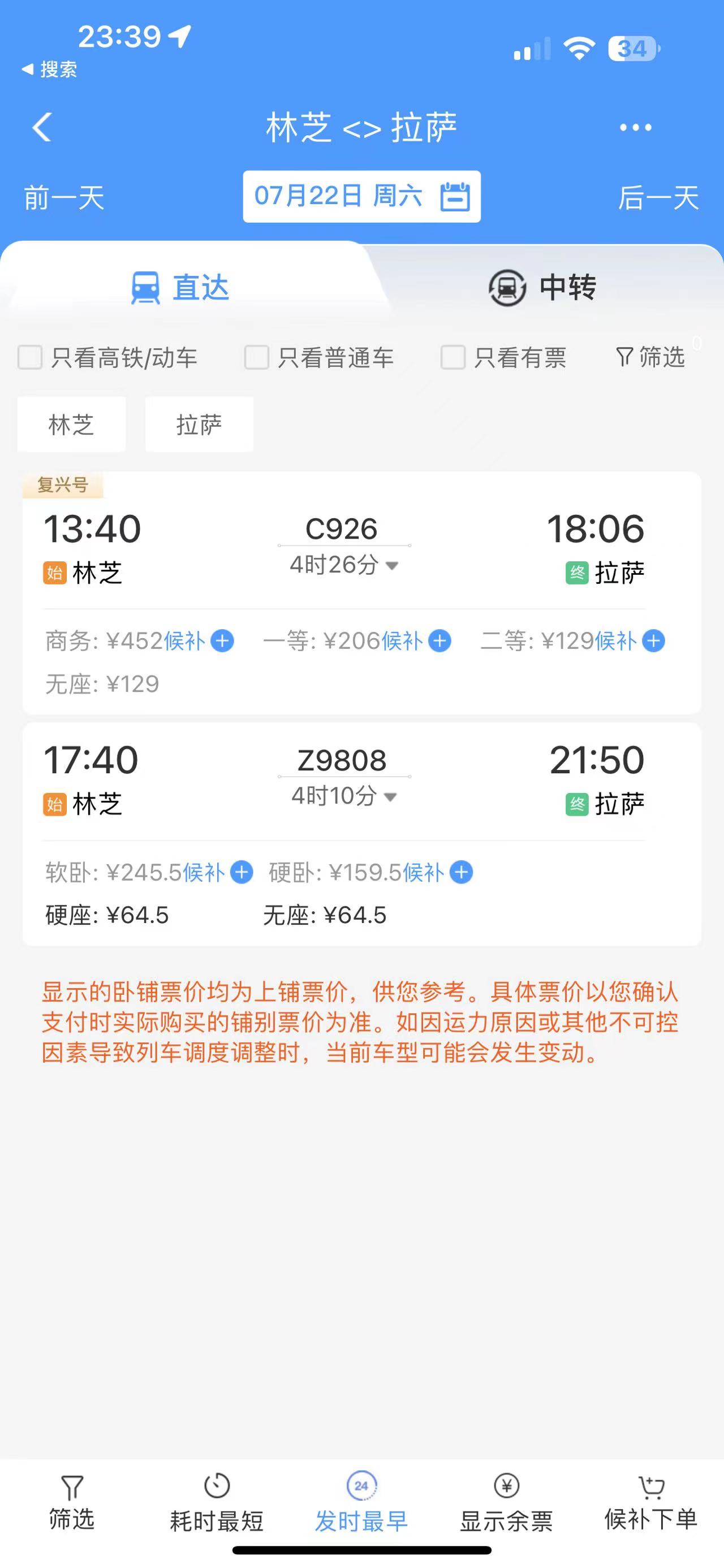 通過在鐵路售票APP上查詢發(fā)現(xiàn),從林芝開往拉薩的復興號城際列車的二等座票價為129元,直達特快列車硬座為64.5元?!跋啾容^原先180元的客運汽車票價,直達特快列車便宜了近乎三分之一?!辈芟壬锌卣f道。