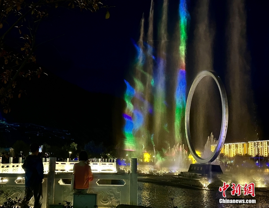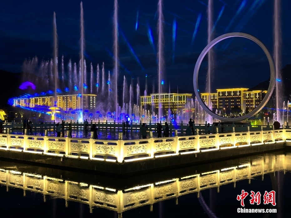 音樂(lè)水秀噴泉位于工布公園人工生態(tài)湖中。錢姣姣 攝