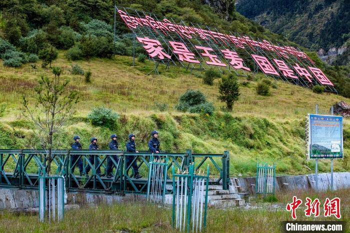 圖為袁浩杰與戰(zhàn)友在海拔5373米的普瑪江塘邊境派出所巡邏。山南邊境管理支隊(duì)供圖