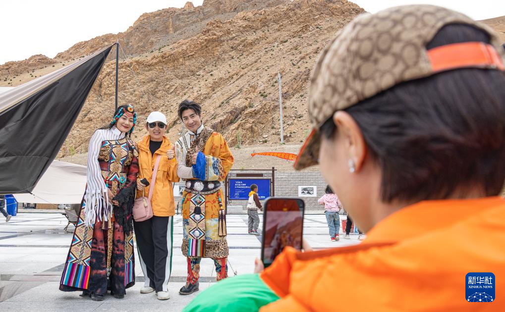 游客和演員合影。新華社記者 丁增尼達(dá) 攝