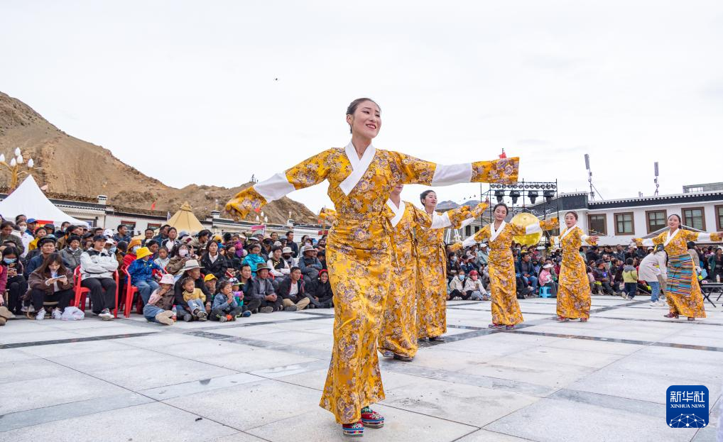 演員在表演定日洛諧舞蹈。新華社記者 丁增尼達(dá) 攝