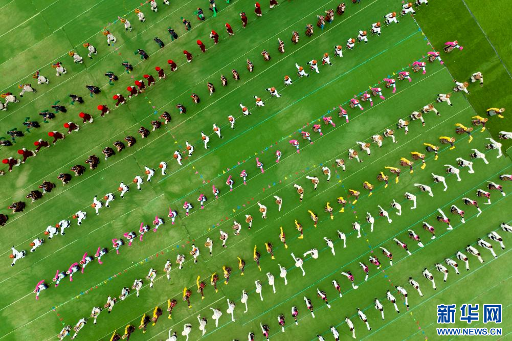 8月10日,演員在開幕式上表演舞蹈(無人機(jī)照片)。新華網(wǎng) 旦增努布 攝