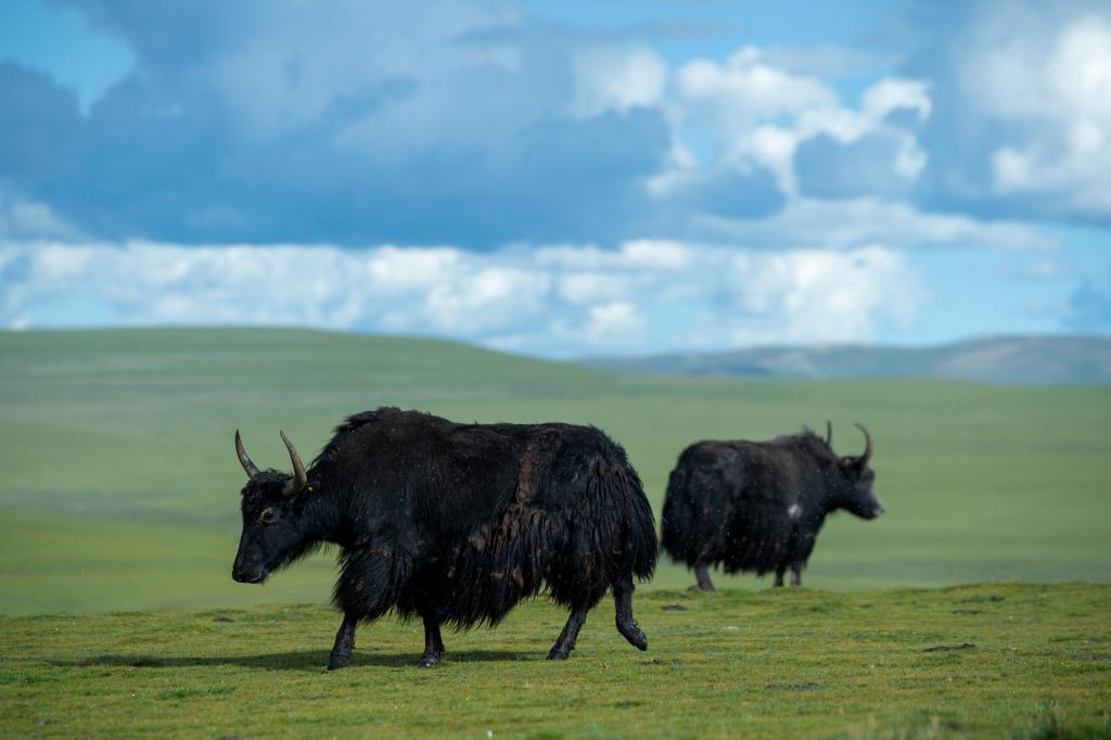 8月11日,在羌塘草原拍攝的牦牛。新華社發(fā)(旦增努布攝)