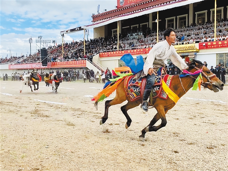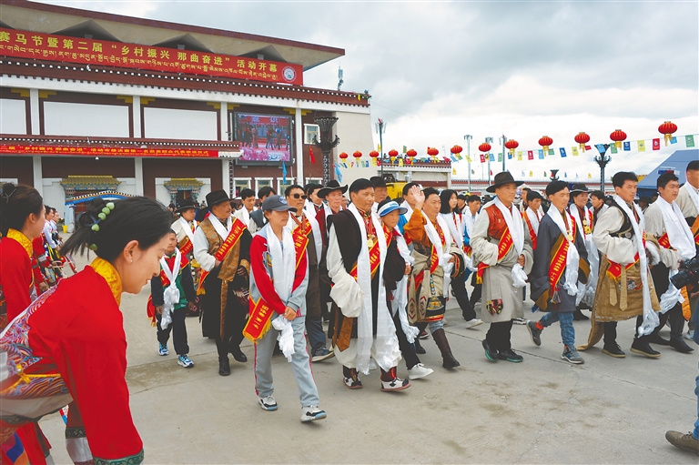 鄉(xiāng)村振興、那曲奮進。群眾的智慧和創(chuàng)造力得以充分施展,田野鄉(xiāng)間的勞動技能煥發(fā)出耀眼光彩,以賽馬為核心的傳統(tǒng)節(jié)日也因新比賽內(nèi)容的融入,相得益彰、相互促進,而富有了新的時代內(nèi)涵。
