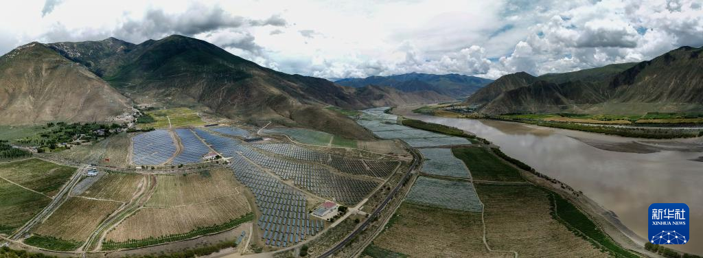 鳥瞰桑日縣高海拔葡萄種植基地(無人機(jī)照片,7月26日攝)。新華社記者 姜帆 攝