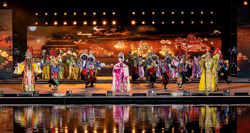 在2023拉薩雪頓節(jié)開幕式文藝演出上,京劇藏戲《文成公主》再次上演(8月16日攝)。丁增尼達(dá) 攝