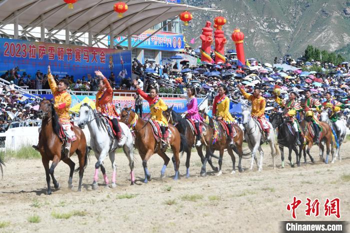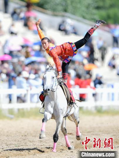 8月17日,西藏傳統(tǒng)體育項目——馬術表演亮相雪頓節(jié),在拉薩賽馬場開幕。民族傳統(tǒng)馬術表演內(nèi)容包括馬背上的舞蹈、馬上斬劈、馬上射箭、馬上敬酒、馬上拾哈達、多人多馬(疊羅漢)等10余個大項。當天的活動,為民眾及游客帶來了一場視覺盛宴。