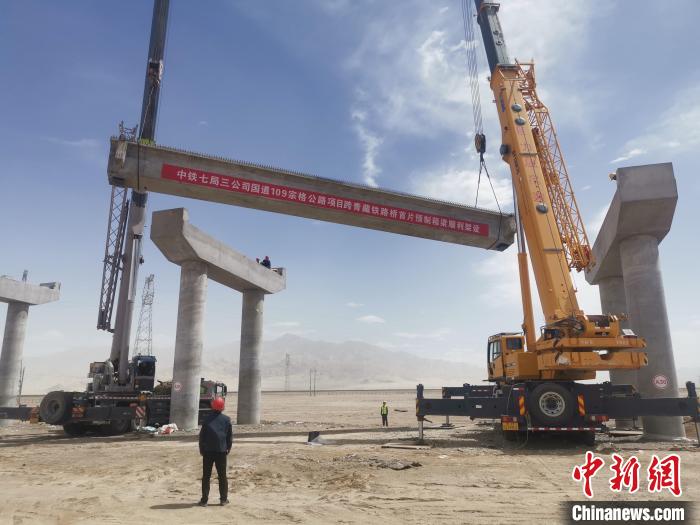 記者17日從中鐵七局集團有限公司(以下簡稱“中鐵七局”)獲悉,日前,由該公司承建的國道109宗格公路項目跨青藏鐵路橋首片預制箱梁順利完成架設,標志著該項目預制箱梁架設施工拉開序幕。