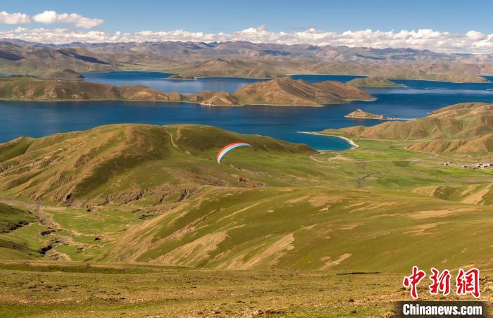 八月的羊卓雍措,湖水湛藍青碧,波光瀲滟,如一幅色彩明艷的油畫。在滑翔傘精彩的表演中,2023年環(huán)羊卓雍措自行車公開賽18日在西藏山南市羊卓雍措湖畔鳴槍開賽。