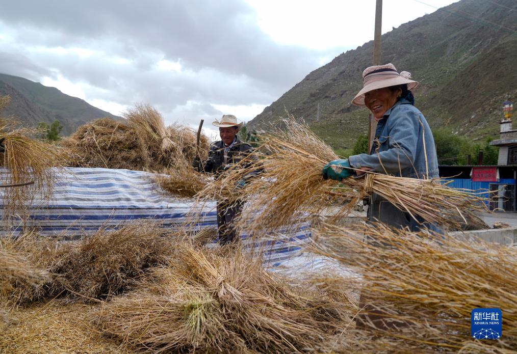 目前,西藏各地進入秋收時節(jié)。西藏山南市乃東區(qū)的農(nóng)民在抓緊收獲作物。新華社記者 姜帆 攝