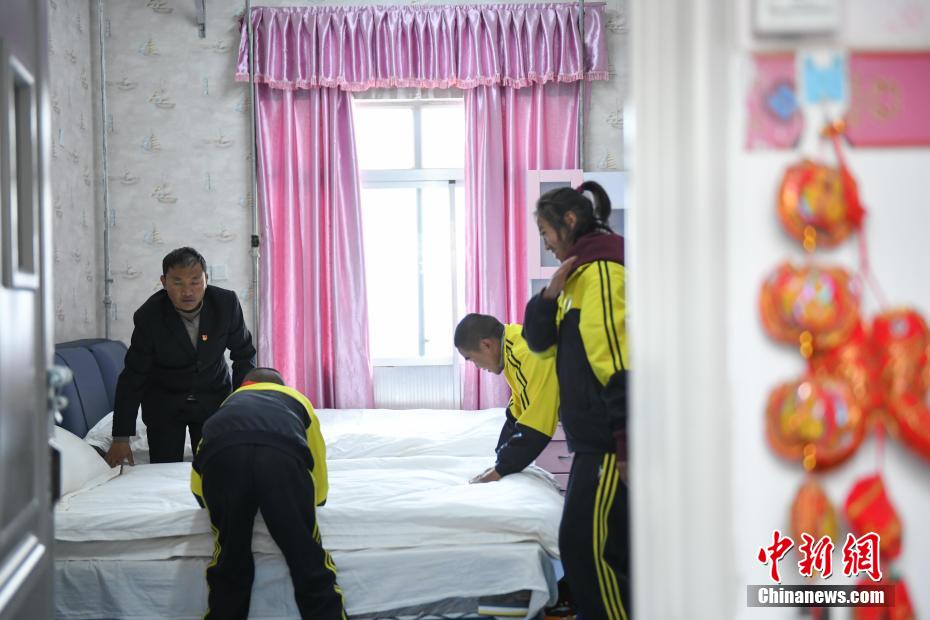 圖為那曲市特殊教育學(xué)校學(xué)生學(xué)習(xí)酒店服務(wù)。貢嘎來松 攝