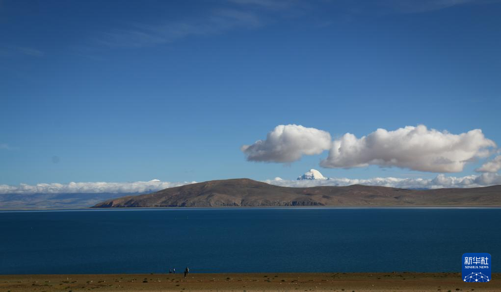 岡仁波齊峰和湖水交相輝映(8月13日攝)。新華社記者 曹檳 攝