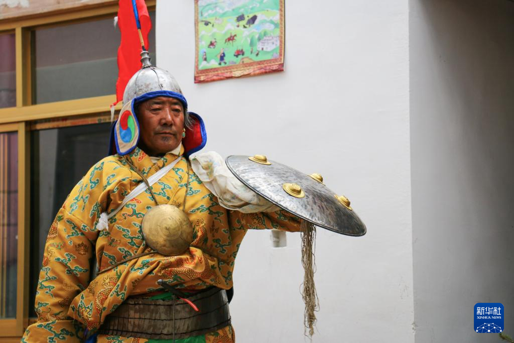 西德村“果爾孜”舞非遺傳承人旦成益西正在表演(8月10日攝)。新華社記者 聶毅 攝