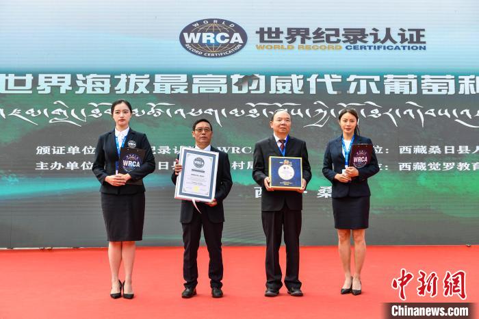 23日,經(jīng)世界紀錄認證(WRCA)官方人員現(xiàn)場審核,西藏桑日縣被認證為“世界海拔最高的威代爾葡萄種植基地”。