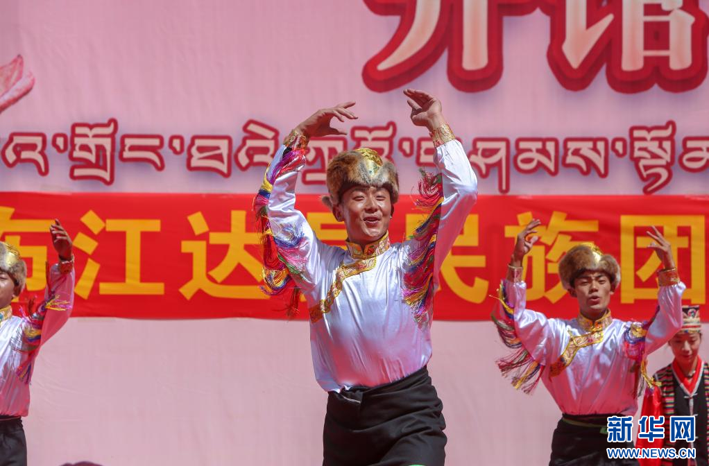 開館儀式上,演員正在表演具有當(dāng)?shù)靥厣拿褡逦璧?。?月27日攝)新華社記者 黃智琪 攝