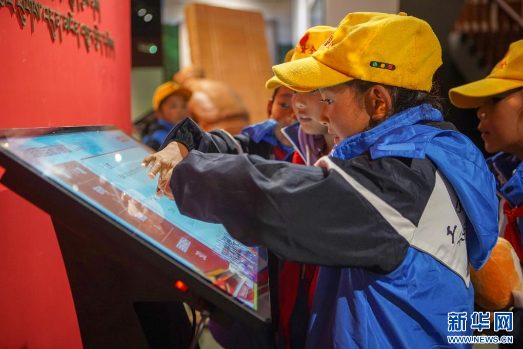 開館儀式當(dāng)天,當(dāng)?shù)匦W(xué)學(xué)生圍在館內(nèi)民族團(tuán)結(jié)知識(shí)測(cè)試機(jī)器前答題。(9月27日攝)新華社記者 黃智琪 攝