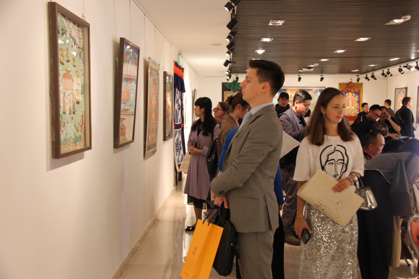 作為“西藏文化周”的重要活動(dòng)之一, “中國(guó)西藏·扎西德勒”唐卡精品展于當(dāng)晚同期開幕。唐卡是中華民族藝術(shù)寶庫(kù)中彌足珍貴的非物質(zhì)文化遺產(chǎn),距今已有一千三百多年的歷史,用料考究,繪制復(fù)雜,色澤艷麗,經(jīng)久不退,被稱為“藏民族的百科全書”。本次展覽展出二十余幅具有代表性的精品唐卡佳作,內(nèi)容豐富、構(gòu)圖嚴(yán)謹(jǐn)、細(xì)致精微,神態(tài)生動(dòng)傳神,線條沉穩(wěn)細(xì)膩,色彩艷麗不俗,生動(dòng)詮釋了藏民族的非凡智慧,展現(xiàn)了唐卡獨(dú)特的魅力。當(dāng)晚,唐卡欽則派代表性傳承人白瑪達(dá)娃在現(xiàn)場(chǎng)開展唐卡作畫、授課,引起在場(chǎng)嘉賓觀眾的驚嘆贊美和參與熱情!