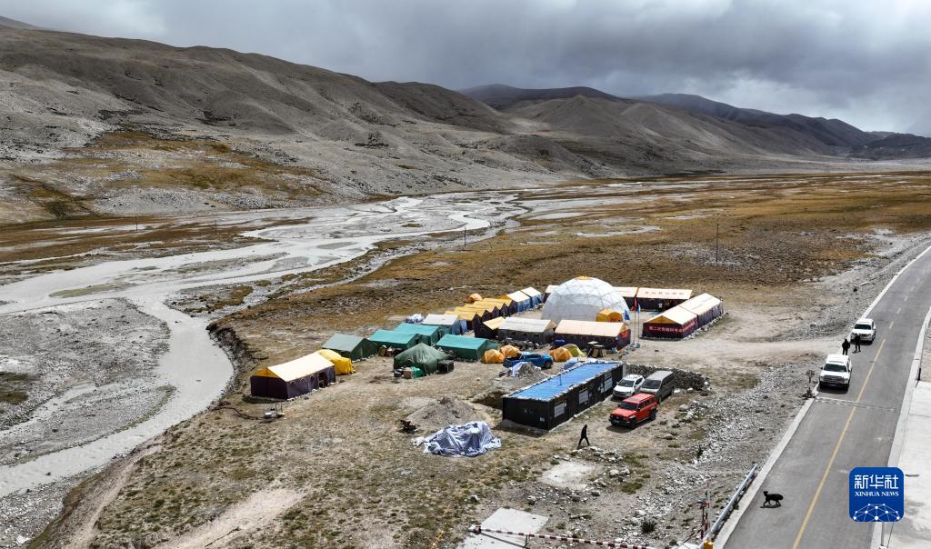 這是卓奧友峰登山大本營(yíng),科考隊(duì)員在這里開展部分急進(jìn)高原人群健康研究(10月1日攝,無人機(jī)照片)。新華社記者 晉美多吉 攝