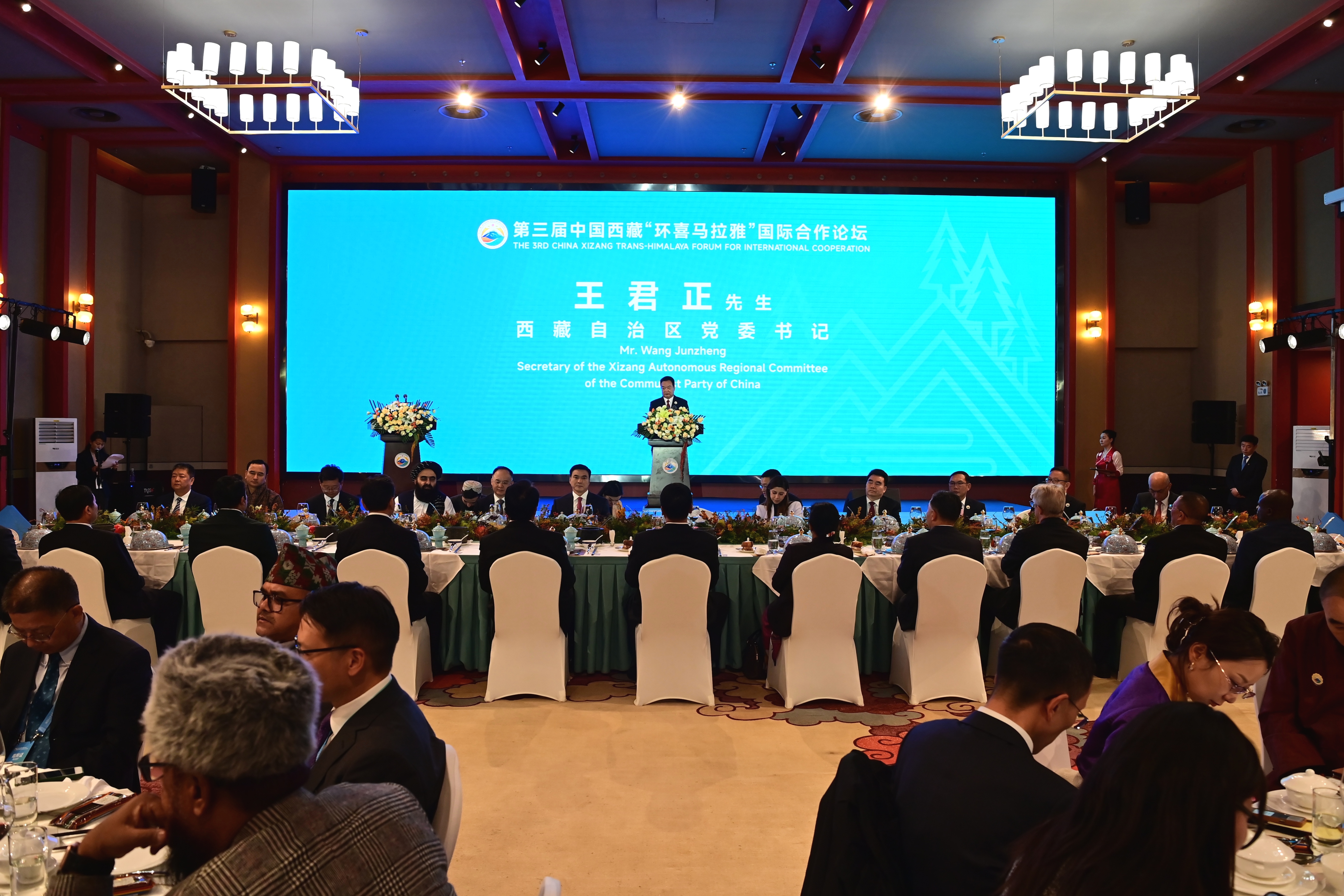 王君正代表自治區(qū)黨委、政府和全區(qū)各族人民,向出席中國西藏“環(huán)喜馬拉雅”國際合作論壇的中央和國家機(jī)關(guān)部委領(lǐng)導(dǎo)、各國政要、專家學(xué)者表示熱烈歡迎,向大家長(zhǎng)期以來對(duì)西藏經(jīng)濟(jì)社會(huì)各項(xiàng)事業(yè)發(fā)展的支持表示衷心感謝。