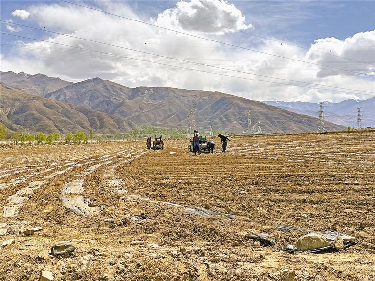 “這些土地,過去沙化太嚴重,無法保存水分,我們經過不斷的翻耕改良后,才有了目前的這850畝土地?!蔽鞑厍睾剔r業(yè)綜合開發(fā)有限公司工作人員洛珠達瓦介紹。