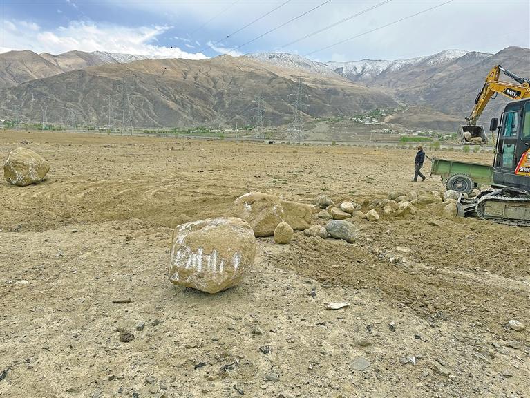 洛珠達瓦打開手機中的相冊,他指著挖石頭的視頻說:“雅魯藏布江沿岸土地中的石頭太多了,有些石頭重達幾噸,根本無法種植任何農作物。為了撿石頭、挖石頭,我們每天從村里雇10多個人來干活。”