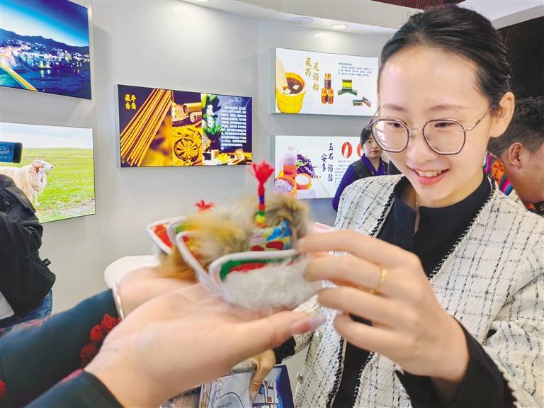 “這次畜產(chǎn)品展銷活動上,我們主要銷售天線帽工藝品、玉石、羊毛圍巾、羊毛毯等,產(chǎn)品價格比較實惠,前來咨詢購買的人也很多。展銷不到兩個小時,就賣了1000多元?!卑捕嗫h措那湖文化傳播有限責(zé)任公司負責(zé)人貢布多吉的臉上充滿了喜悅。