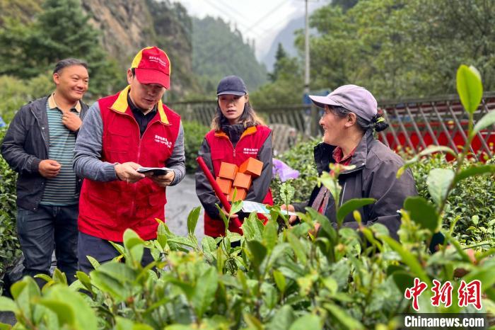 10月7日,國網山南供電公司服務隊在勒鄉(xiāng)茶田間開展供電宣傳工作。多吉次仁 攝