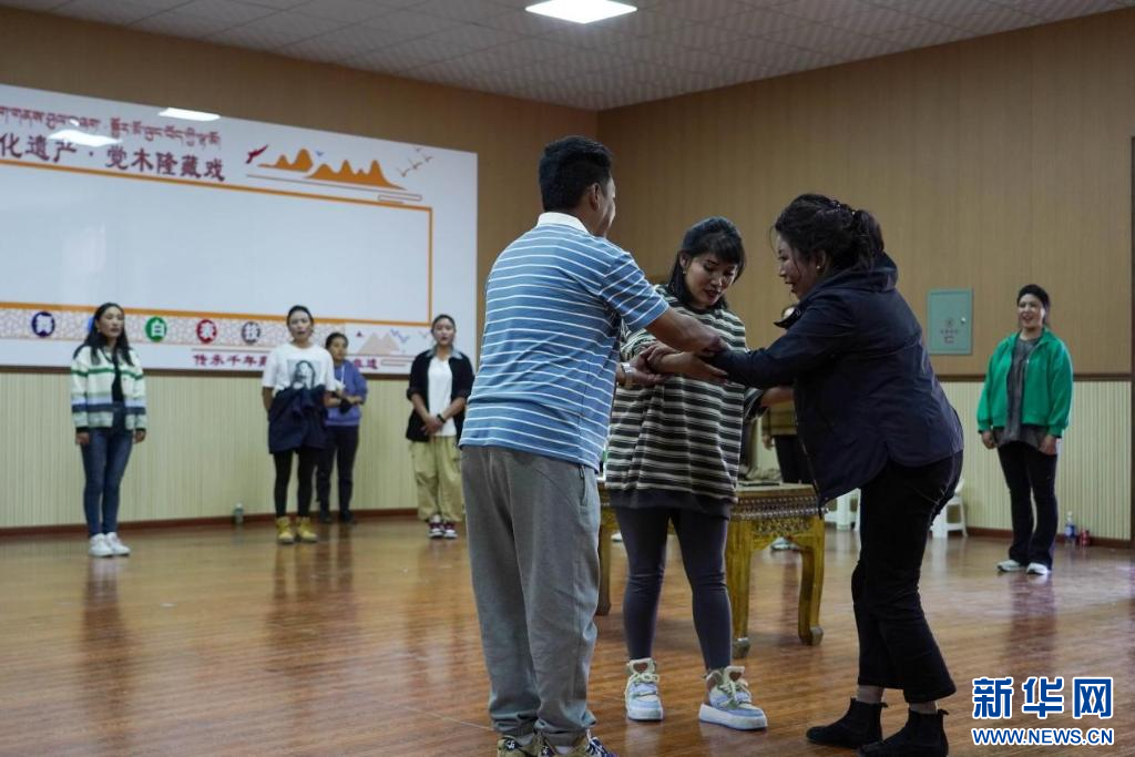 圖為覺木隆藏戲團(tuán)在排練《白瑪文巴》(9月26日攝)。新華網(wǎng)發(fā) 司秦菱 攝