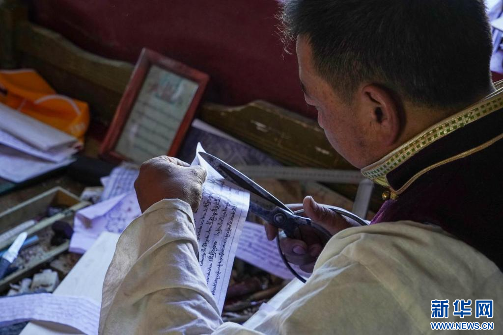 圖為嘎瑪曲扎正在挑選雕刻所用木板(10月21日攝)。新華網(wǎng)發(fā) 司秦菱 攝