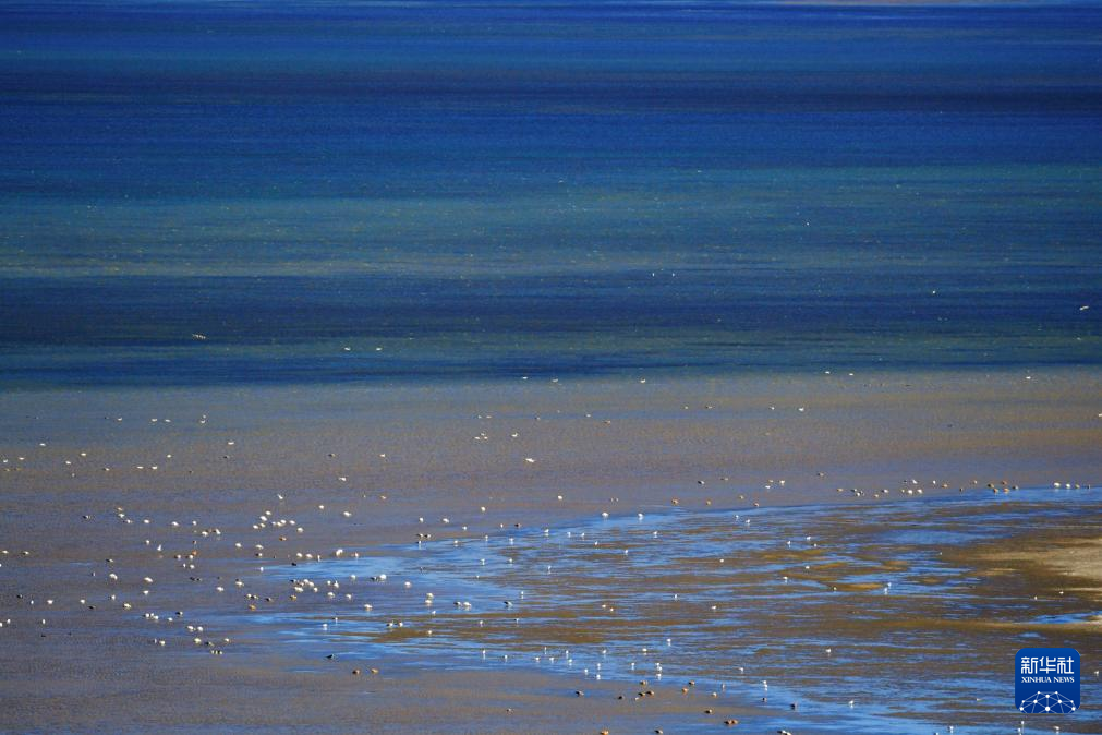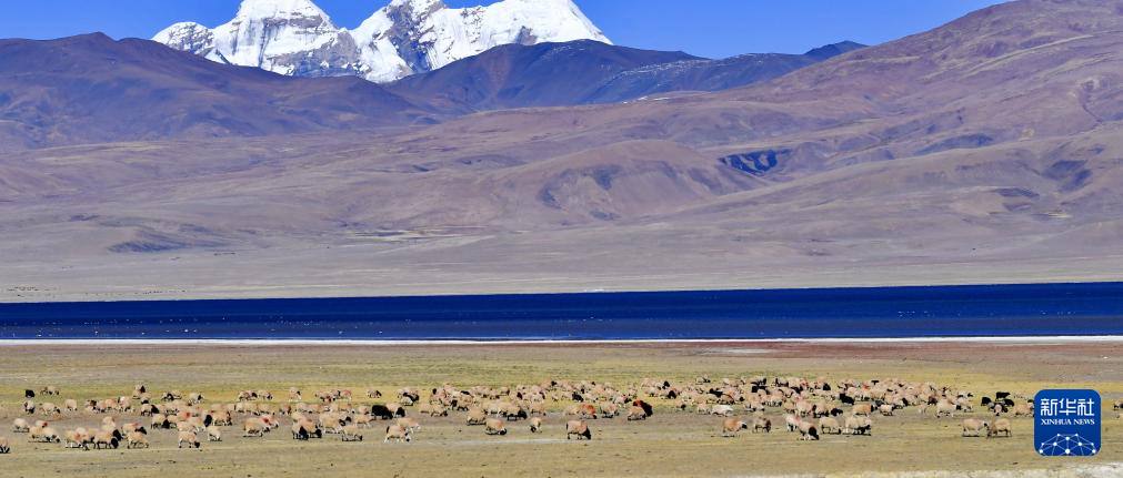 哲古湖畔草場上的羊群(10月25日攝)。新華社記者 張汝鋒 攝