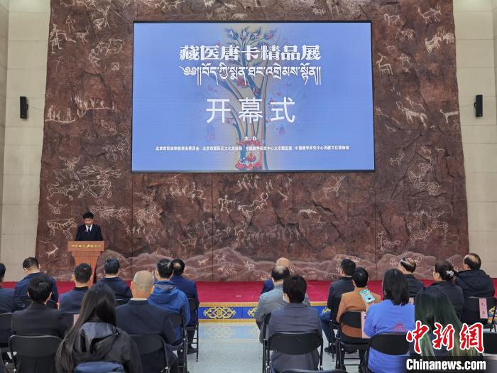 中國(guó)藏學(xué)研究中心北京藏醫(yī)院院長(zhǎng)仲格嘉在開幕式上致辭表示,起源和根植于中華民族的藏醫(yī)藥,是中國(guó)中醫(yī)藥學(xué)寶庫(kù)中的一顆璀璨明珠,迄今已有3800多年發(fā)展歷史。在藏醫(yī)學(xué)史上,形成了別出心裁的藏醫(yī)唐卡,以浩瀚畫卷,形象生動(dòng)、系統(tǒng)描繪了藏醫(yī)藥學(xué)的體系框架、基礎(chǔ)理論、臨床實(shí)踐技法,以及藏醫(yī)史、醫(yī)德醫(yī)風(fēng)、養(yǎng)生保健等內(nèi)容。除實(shí)用價(jià)值外,藏醫(yī)唐卡還有很高的民族學(xué)、歷史學(xué)、宗教學(xué)及美學(xué)價(jià)值,堪稱“學(xué)習(xí)藏醫(yī)藥學(xué)的百科全書”。
