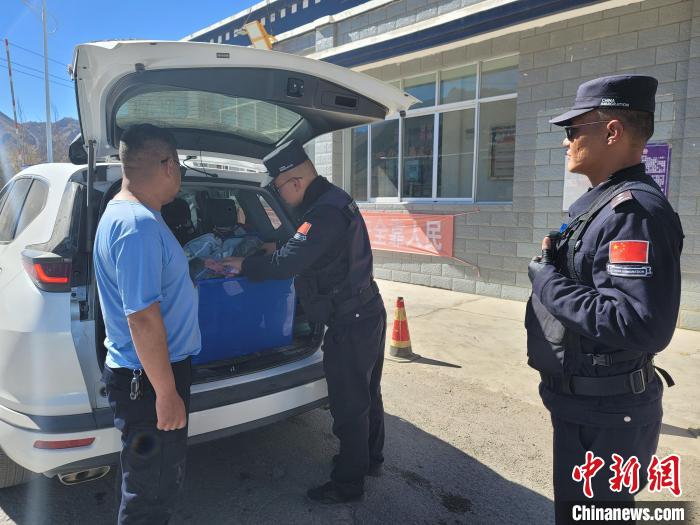 圖為西藏日喀則邊境管理支隊(duì)魯魯邊境檢查站民警對(duì)過(guò)往車輛及隨車人員進(jìn)行檢查。魯魯邊境檢查站供圖