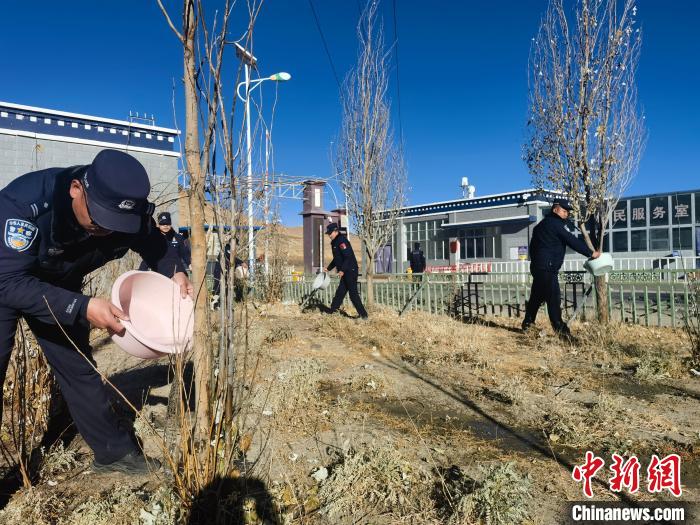 圖為魯魯邊境檢查站組織民警在營(yíng)區(qū)周邊和查驗(yàn)通道附近開(kāi)展冬灌排水、施肥等綠化養(yǎng)護(hù)工作。魯魯邊境檢查站供圖