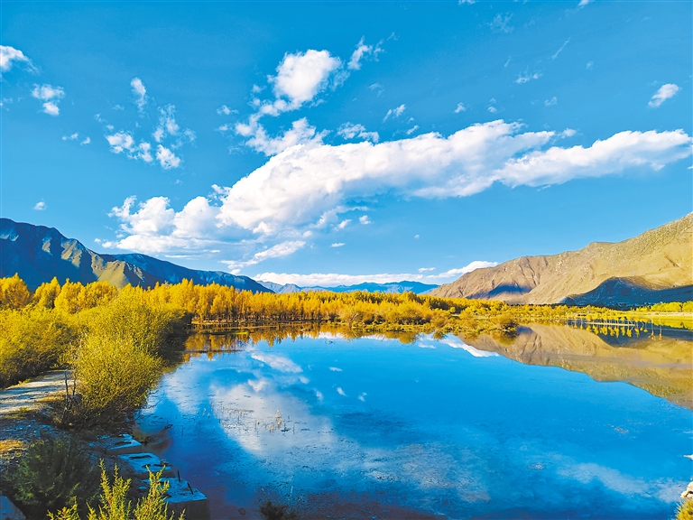 藍天、白云、湖泊、草原、樹林,拉薩深秋的色彩最為豐富,風(fēng)光最為寧靜、澄澈、壯美。