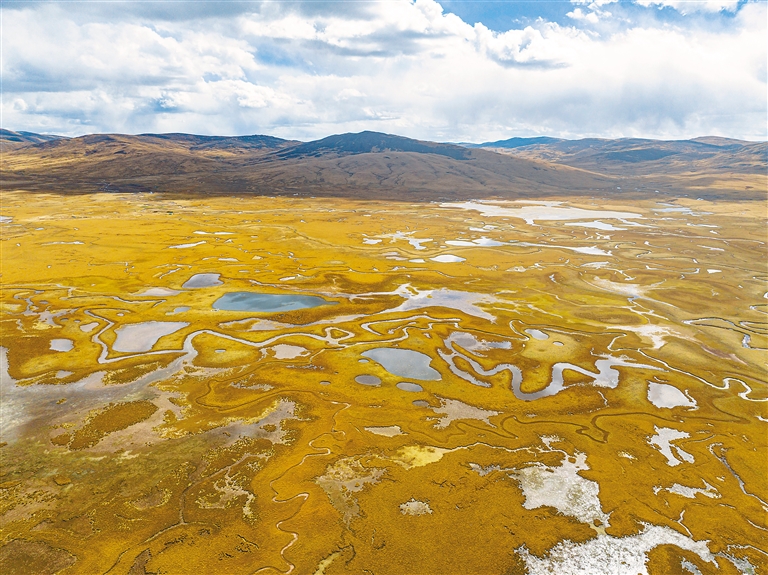 位于昌都市貢覺(jué)縣的拉妥濕地(無(wú)人機(jī)拍攝)。新華社記者 孫非 攝