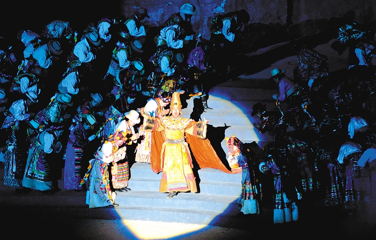 圖為大型實景史詩劇《文成公主》演出現場。 記者 次仁平措 唐斌 攝