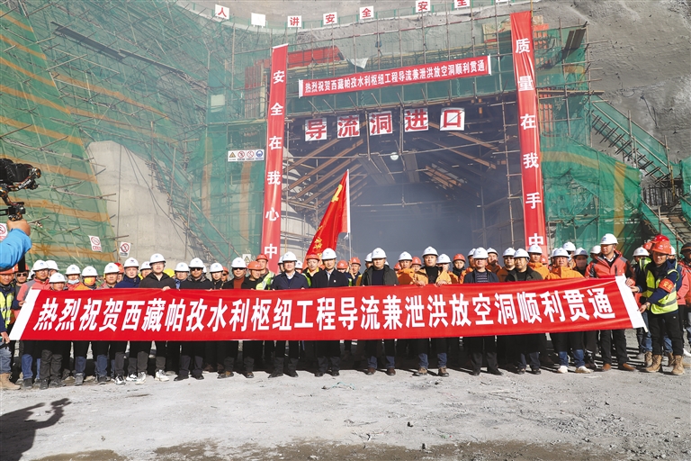 圖為帕孜水利樞紐工程導(dǎo)流兼泄洪放空洞順利貫通現(xiàn)場(chǎng)。記者 李梅英 攝