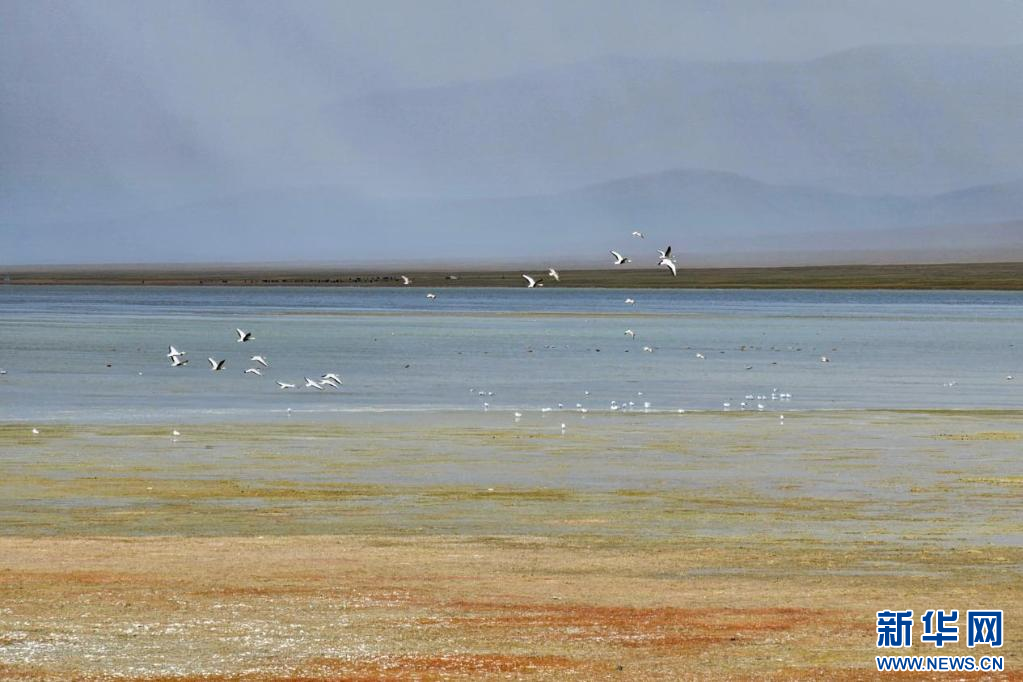 11月17日,在哲古湖拍攝的鳥群(無人機(jī)照片)。新華網(wǎng) 旦增努布 攝