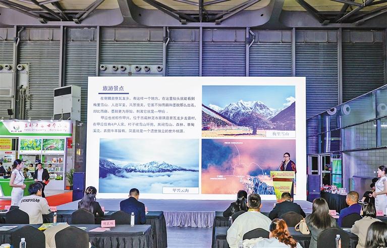 察隅縣農(nóng)業(yè)農(nóng)村局工作人員推介察隅獼猴桃產(chǎn)業(yè)和茶葉產(chǎn)業(yè)。