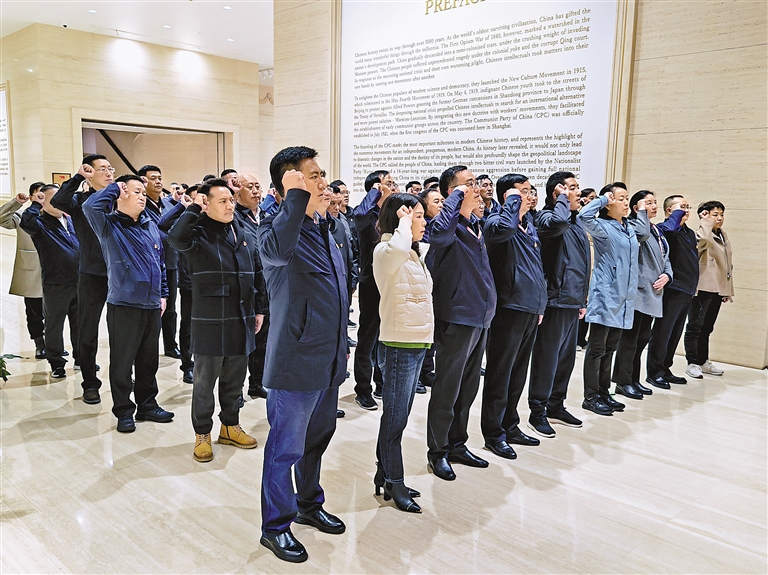 圖為學(xué)員們在中共一大紀(jì)念館重溫入黨誓詞。徐晶 攝
