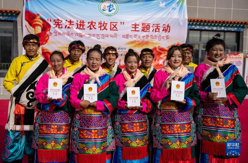 當日,“憲法進農(nóng)牧區(qū)”主題活動在西藏山南市貢嘎縣森布日生態(tài)搬遷安置點舉行,西藏自治區(qū)農(nóng)業(yè)農(nóng)村廳向當?shù)剞r(nóng)牧民群眾贈送了《中華人民共和國憲法》及相關(guān)法律書籍。森布日位于雅魯藏布江北岸,海拔約3600米,聚居著來自那曲雙湖、尼瑪、安多等縣的高海拔生態(tài)搬遷移民。