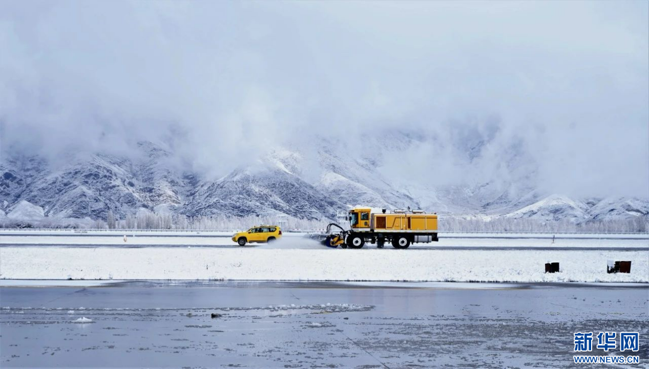 圖為拉薩貢嘎機(jī)場(chǎng)機(jī)坪除冰雪保障作業(yè)。新華網(wǎng) 白瑪群宗 攝