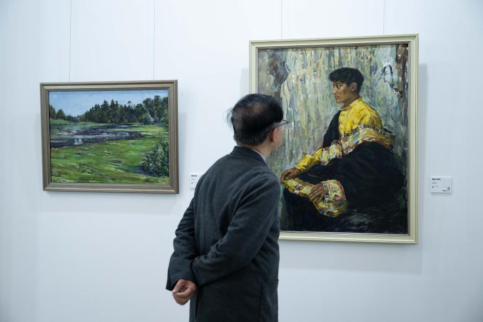 12月13日,市民在“西藏油畫澳門首展”上參觀。新華社記者 張金加 攝