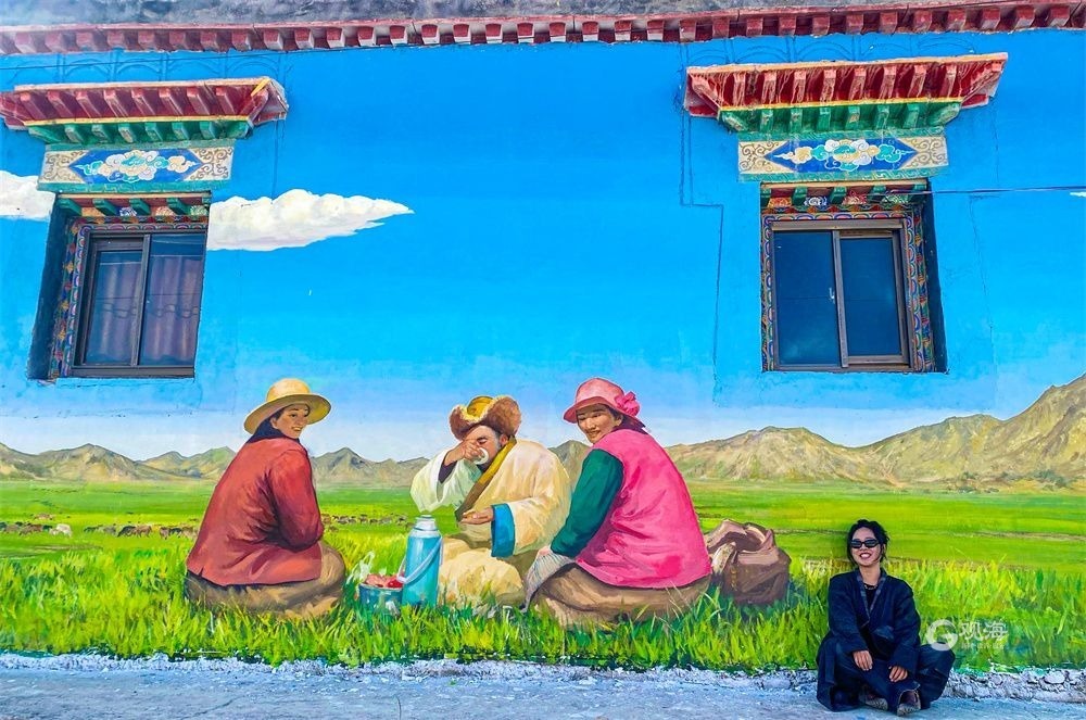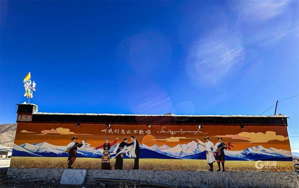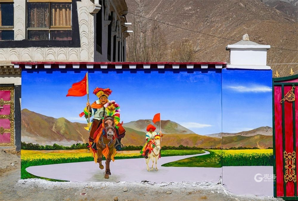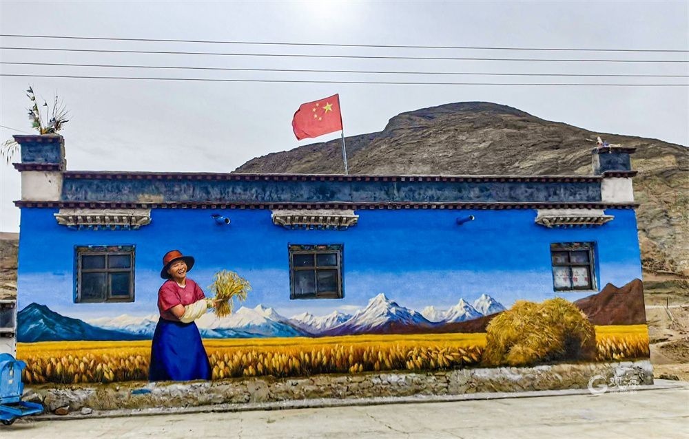 鄉(xiāng)村振興、民族團結(jié)、道路安全、移風(fēng)易俗、傳統(tǒng)文化、現(xiàn)代文明、高原特色……各式各樣的場景,現(xiàn)在已經(jīng)出現(xiàn)在了桑珠孜區(qū)東嘎鄉(xiāng)、聶日雄鄉(xiāng)、曲美鄉(xiāng)、納爾鄉(xiāng)部分鄉(xiāng)村的道路兩旁。一幅幅栩栩如生的手繪墻畫,“爬上”了錯落有致的藏式小樓,“登上”了一座座藏式院落的院墻,成為一道道亮麗的風(fēng)景線。在干凈整潔的鄉(xiāng)村道路旁,錯落有致的農(nóng)家庭院上,粉刷一新的墻面上色彩艷麗的大型墻繪以直觀的畫面和村民喜聞樂見的形式,將鄉(xiāng)村振興、民族團結(jié)、移風(fēng)易俗等內(nèi)容與農(nóng)村景觀有機結(jié)合,讓一堵堵“牛糞墻”有了新活力吸引著過往路人的目光。一幅幅栩栩如生的畫面、一段段民族團結(jié)的故事,與鄉(xiāng)村環(huán)境融為一體,形成了“村中有畫、畫中有村”的整體風(fēng)貌;一面面文明和諧、多彩絢麗的彩繪墻,猶如一張張靈動的文明標簽,將黨的方針政策、藏族同胞的幸福生活活靈活現(xiàn)地展示在墻上,不僅扮靚了鄉(xiāng)村美景,也傳遞了向上向善向美的正能量,處處都能讓人感受到美麗鄉(xiāng)村文明發(fā)展的濃郁氣息。
