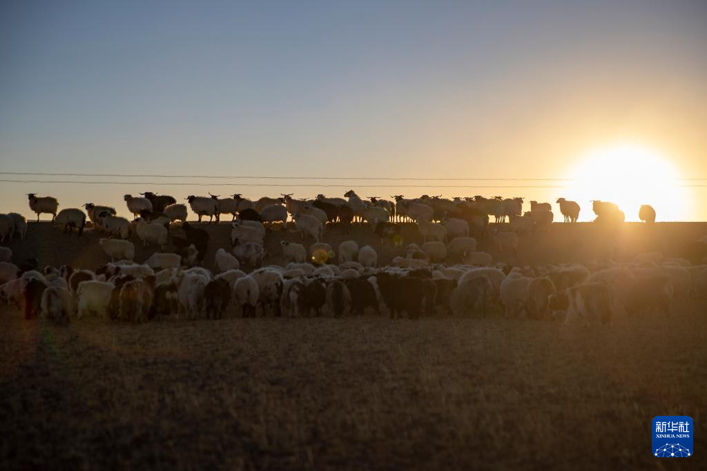 太陽落山,丹增家的羊從草場(chǎng)趕回棚圈(12月18日攝)。新華社記者 劉文博 攝