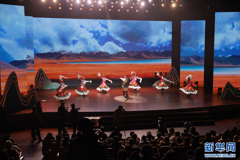 圖為12月21日開幕式晚會歌曲《青稞美酒獻給你》演出現(xiàn)場。新華網(wǎng)發(fā) 李騰 攝