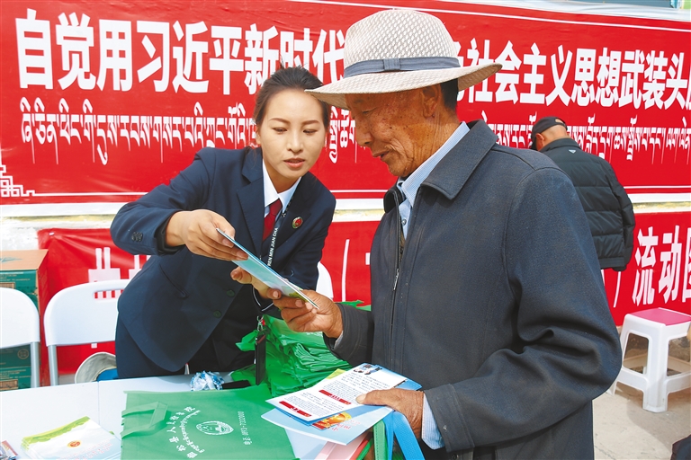 日前,曲松縣新時(shí)代文明實(shí)踐中心聯(lián)合曲松鎮(zhèn)新時(shí)代文明實(shí)踐所、瓊嘎村新時(shí)代文明實(shí)踐站開展“移風(fēng)易俗潤(rùn)民心 鄉(xiāng)風(fēng)文明促振興”主題宣傳活動(dòng)。圖為工作人員向群眾講解宣傳資料。