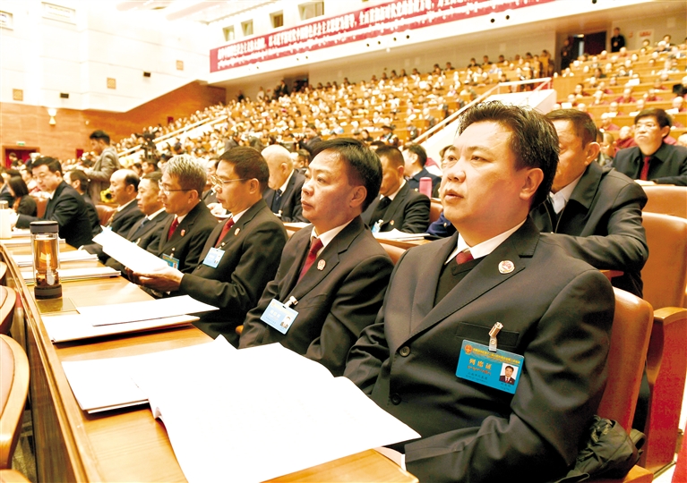 圖為列席人員認真聆聽政府工作報告。記者 旦增蘭澤 攝