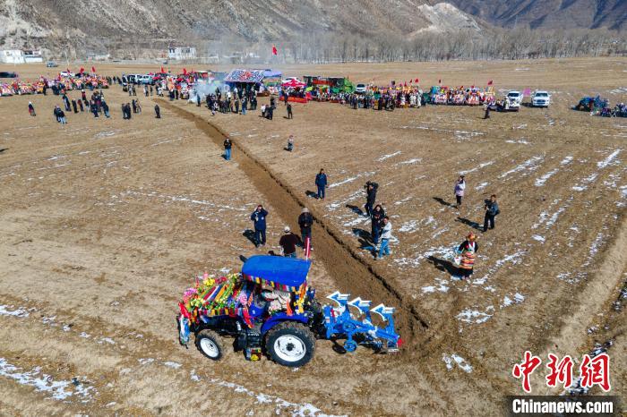 2023年3月16日,西藏拉薩林周縣農(nóng)牧民舉行隆重的春耕開耕儀式。(無人機(jī)拍攝)中新社記者 江飛波 攝