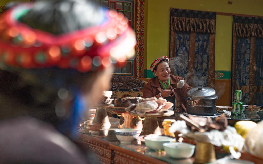 “家里老人安享晚年,年輕人成家立業(yè),孩子們上學(xué)讀書,這就是我們最大的‘年味兒’。”巴桑普尺的女兒尼瑪潘多說。
